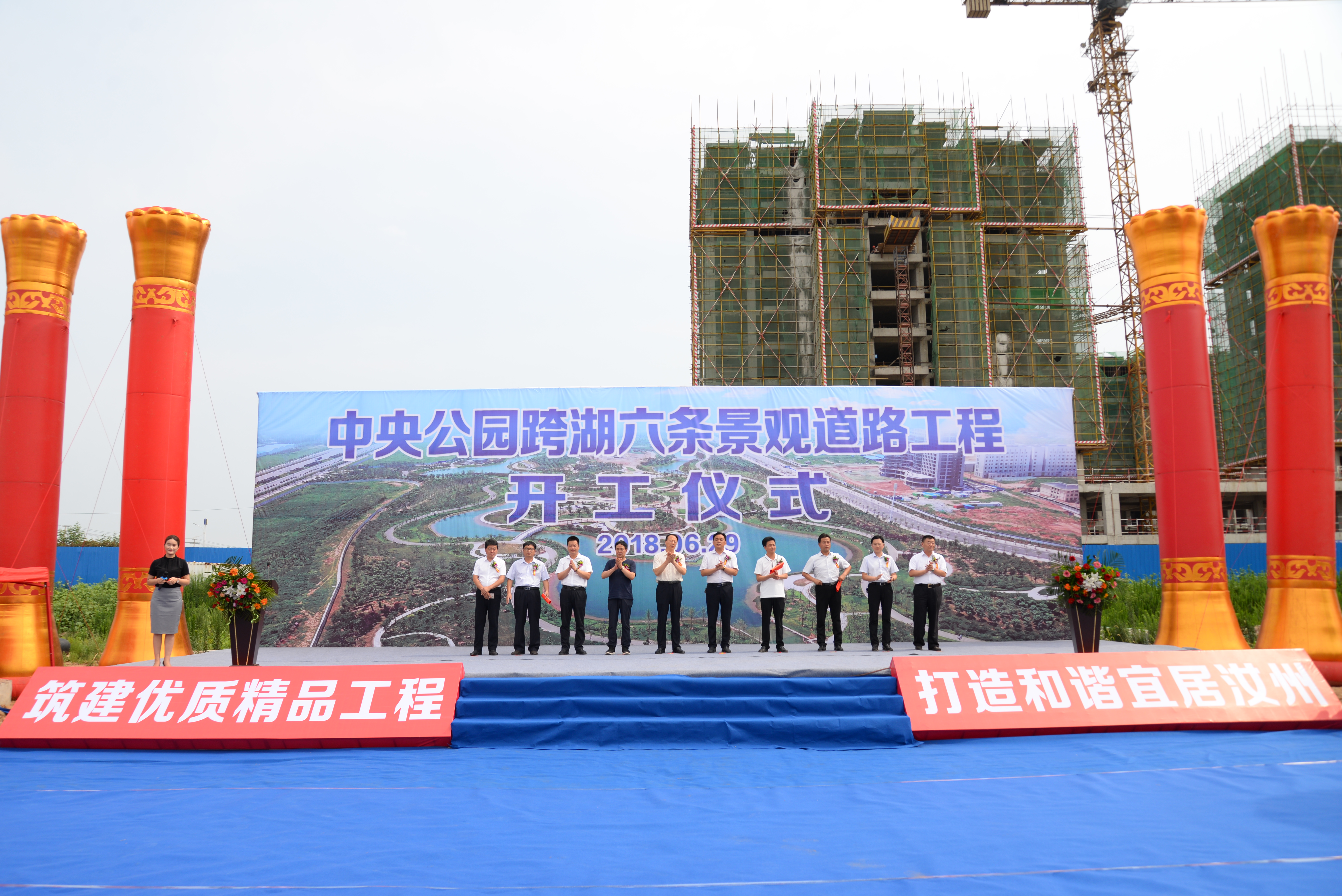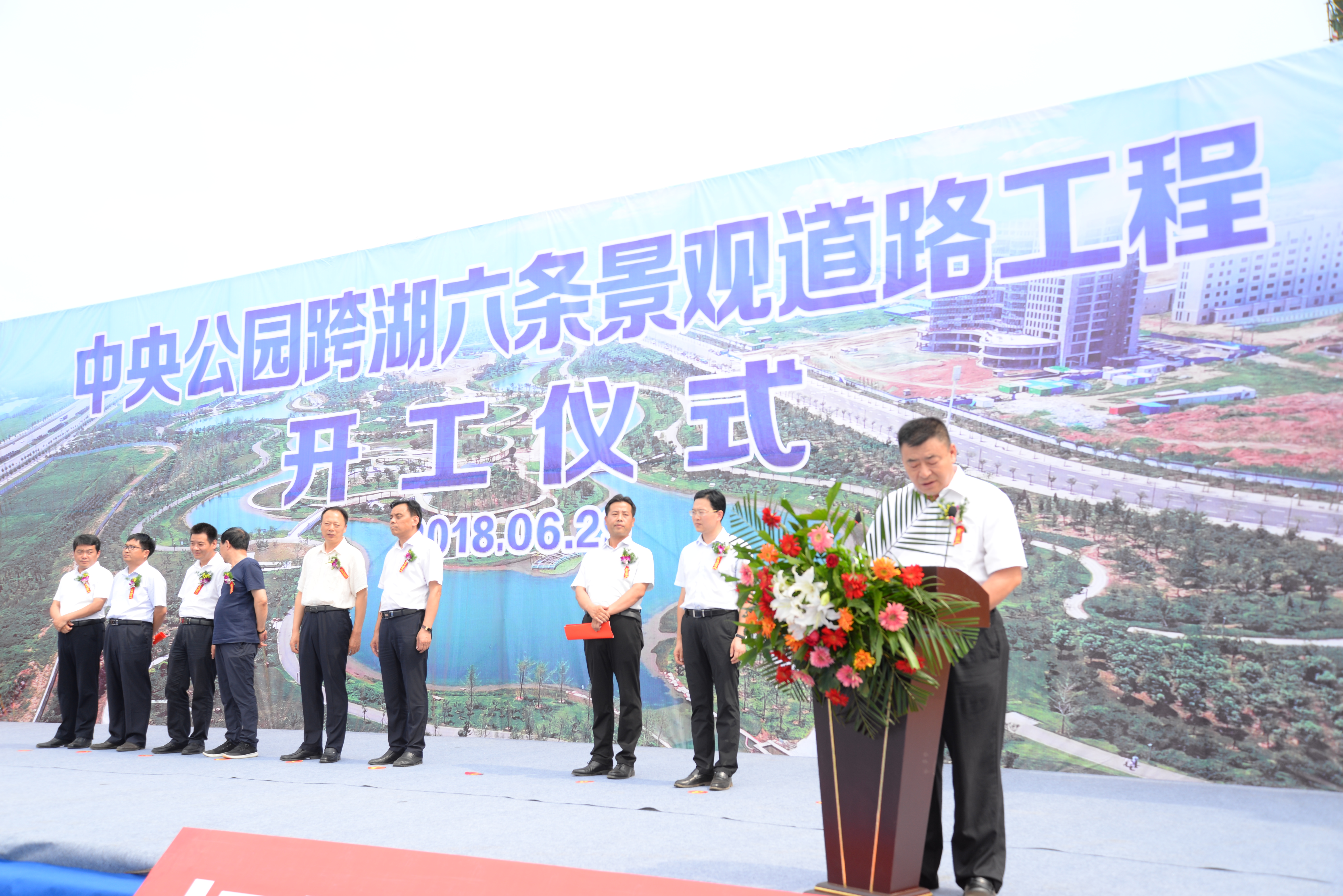 公司汝州市中央公園跨湖六條景觀道路工程開工儀式順利舉行