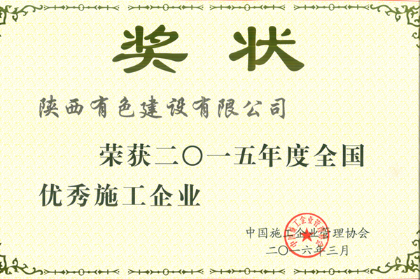 公司榮獲2015年度全國優(yōu)秀施工企業(yè)稱號