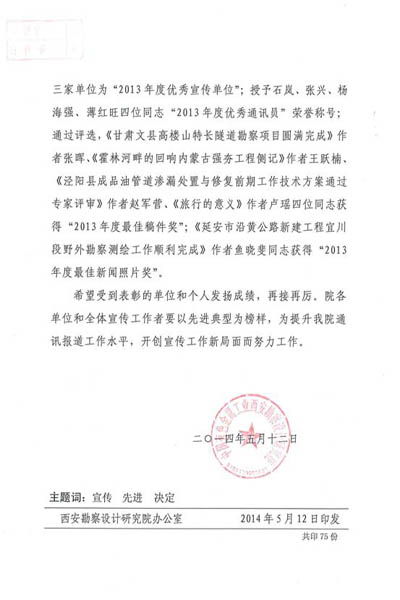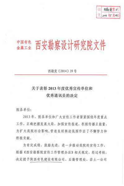 關(guān)于表彰2013年度優(yōu)秀宣傳單位和優(yōu)秀通訊員的決定