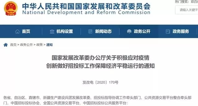 2月8日,國家發改委辦公廳發布《關于積極應對疫情創新做好招投標工作保障經濟平穩運行的通知》,對有序開展招投標等公共資源交易活動、保障經濟平穩運行提出13條要求。